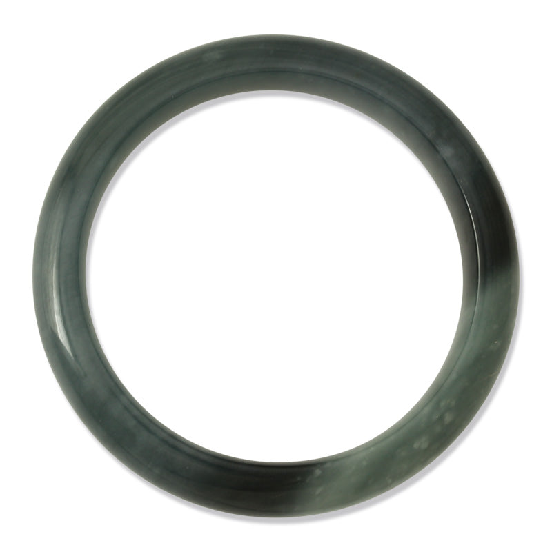 This Guatemalan jadeite jade bangle bracelet for women has a unique jade color, with variation between dark and lighter blue-green colors with light "snowflake" inclusions comprised of albite.