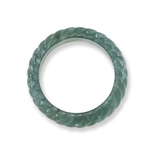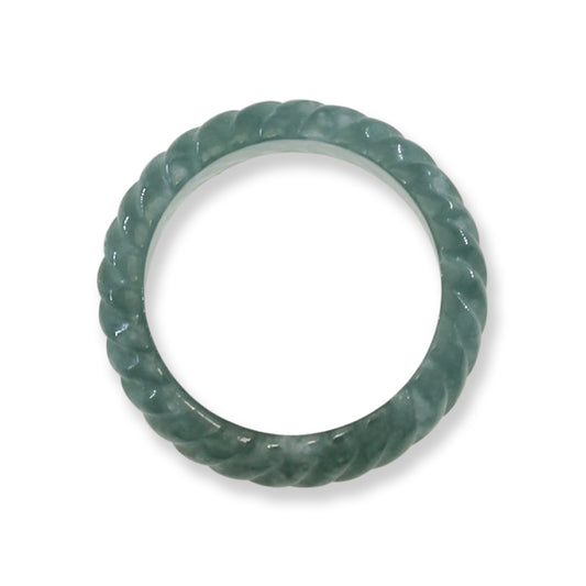Blue Green Jadeite Jade Carved Band Ring Finger Size 4.75 | UPC #398320
