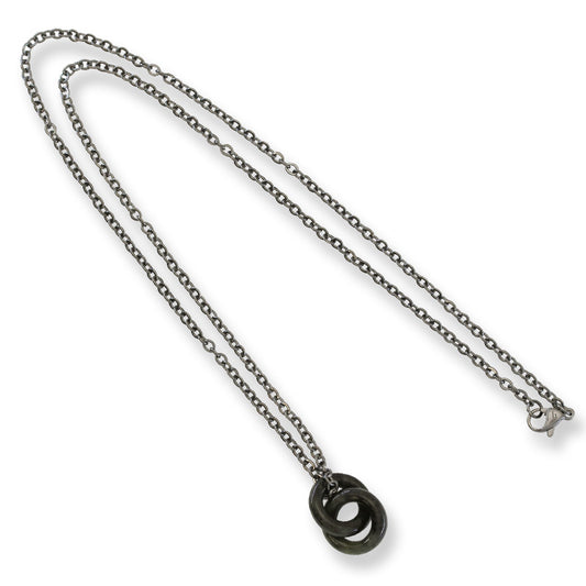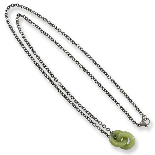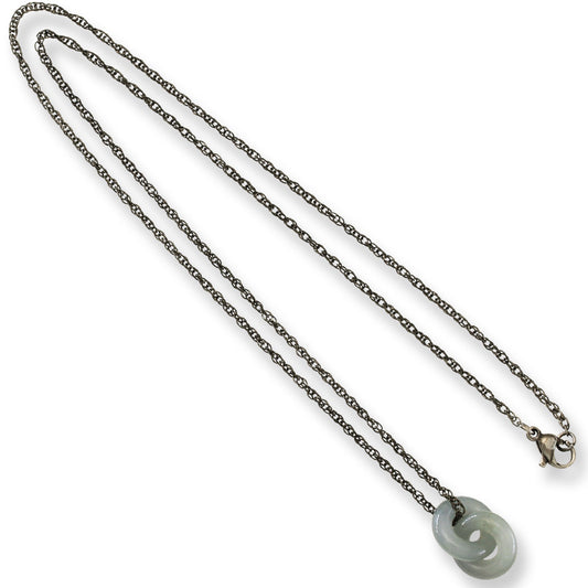 Grey Jadeite Jade Interlocking Double Ring Necklace on 20" Steel Chain | UPC #398764