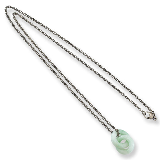 Soft Green Jadeite Jade Interlocking Double Ring Necklace on 20" Steel Chain | UPC #381636