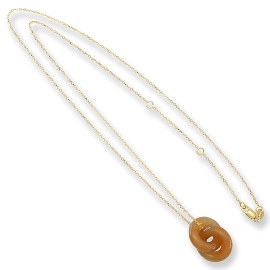 Red Jadeite Jade Double Interlocking Rings in 14K Yellow Gold Chain | UPC #398825