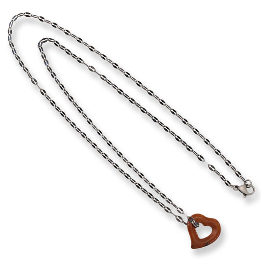 Red Jadeite Jade Heart Pendant on 20" Steel Chain | UPC #398870