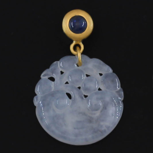 Small Ice Jadeite Jade Carved Lingzhi Mushroom 18K Yellow Gold Pendant | UPC #404038