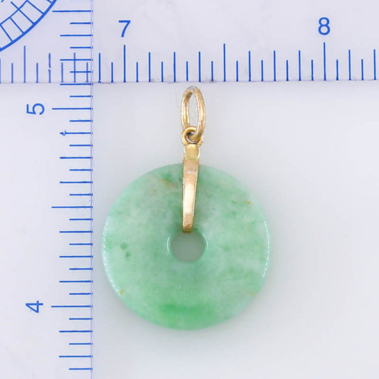 Green Jadeite Jade Pi Disc 14K Yellow Gold Pendant | UPC #389472