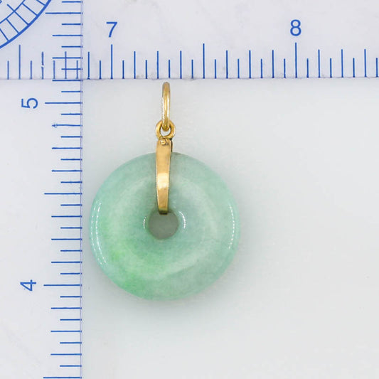Green Jadeite Jade Pi Disc 14K Yellow Gold Pendant | UPC #367975