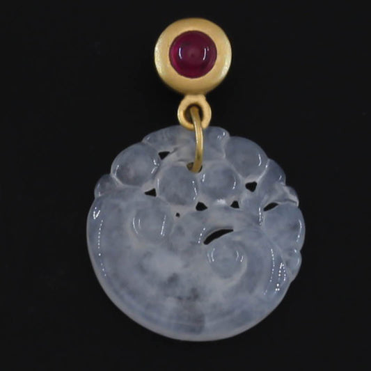 Small Red Jadeite Jade Pi Disc 18K Yellow Gold Pendant | UPC #403208