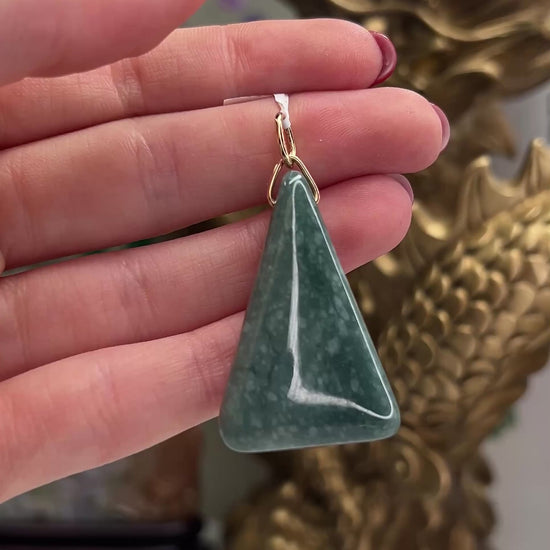Guatemalan jadeite jade, known for its distinctive grey-blue-green hues is a rare and historically significant gemstone once cherished by ancient Mesoamerican civilizations. This Guatemalan jade pendant can be worn by men and women alike and makes a great "worry stone."