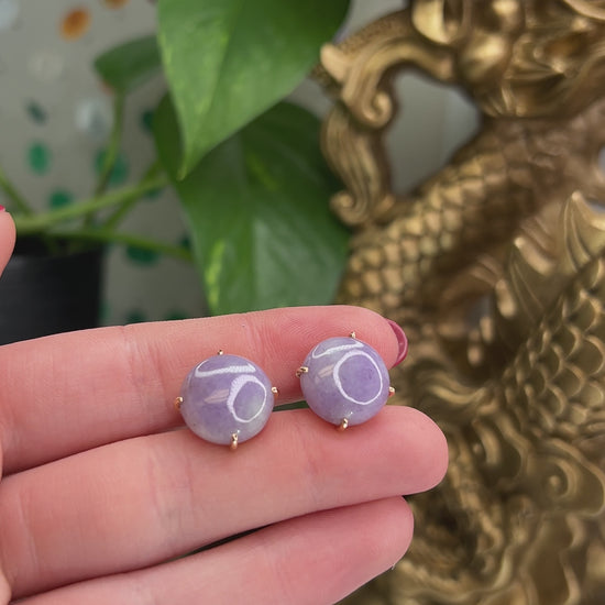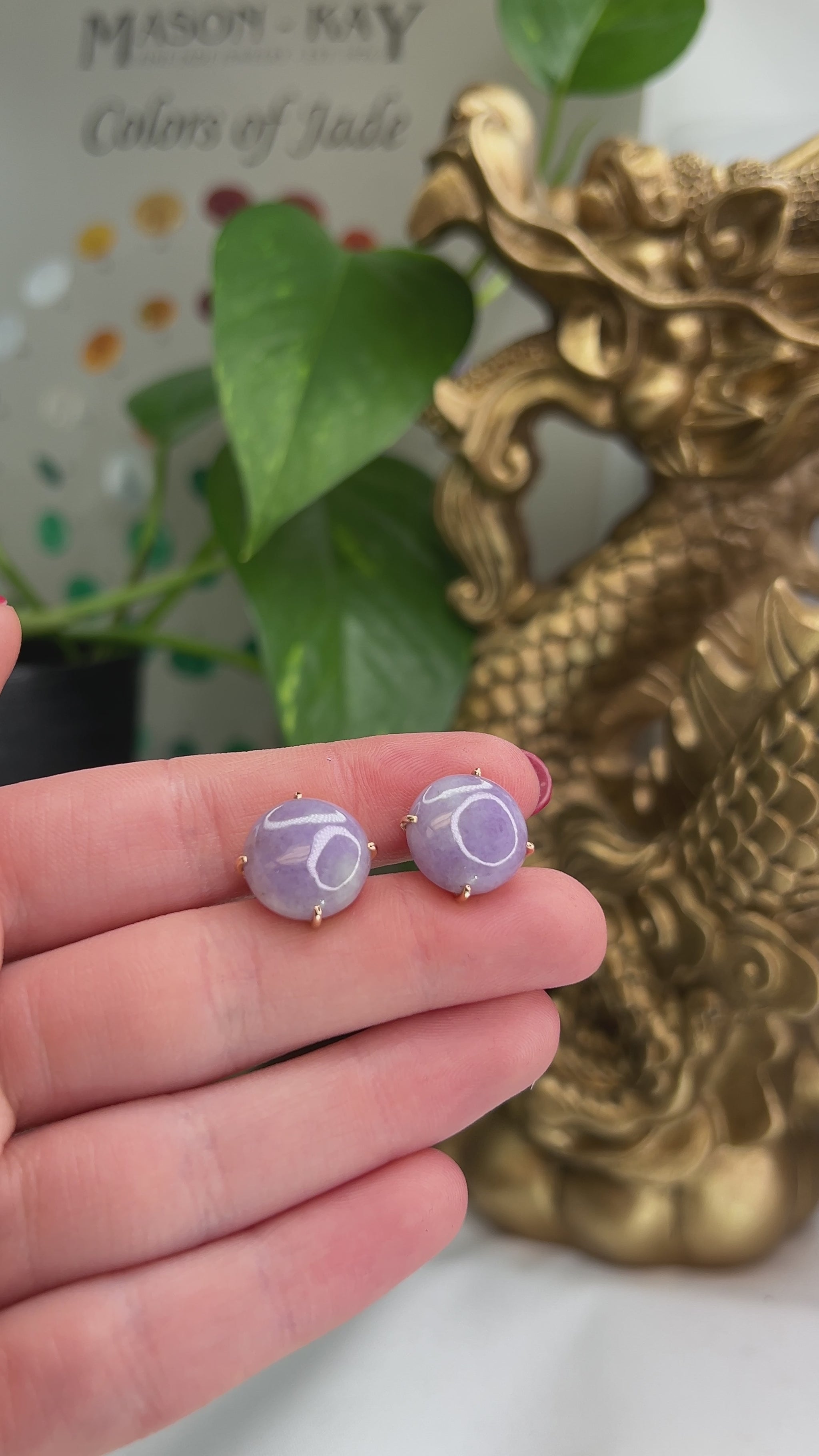 Give yourself the gift of jade with these lavender jadeite jade stud earrings set in 18K yellow gold. These are the perfect addition to any jade jewelry collection! All Mason-Kay jade is natural, untreated A Jade. Certificate Included!