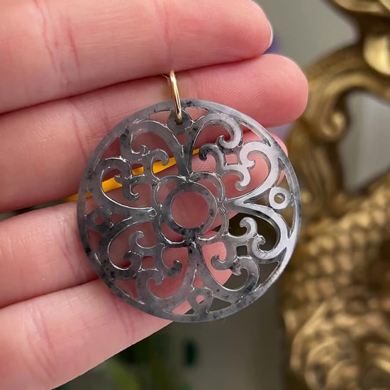This authentic jade pendant for women can be worn on a variety of styles of chain and cord. This jade stone has natural grey jade color and was featured in our livestream on Dec. 2nd: