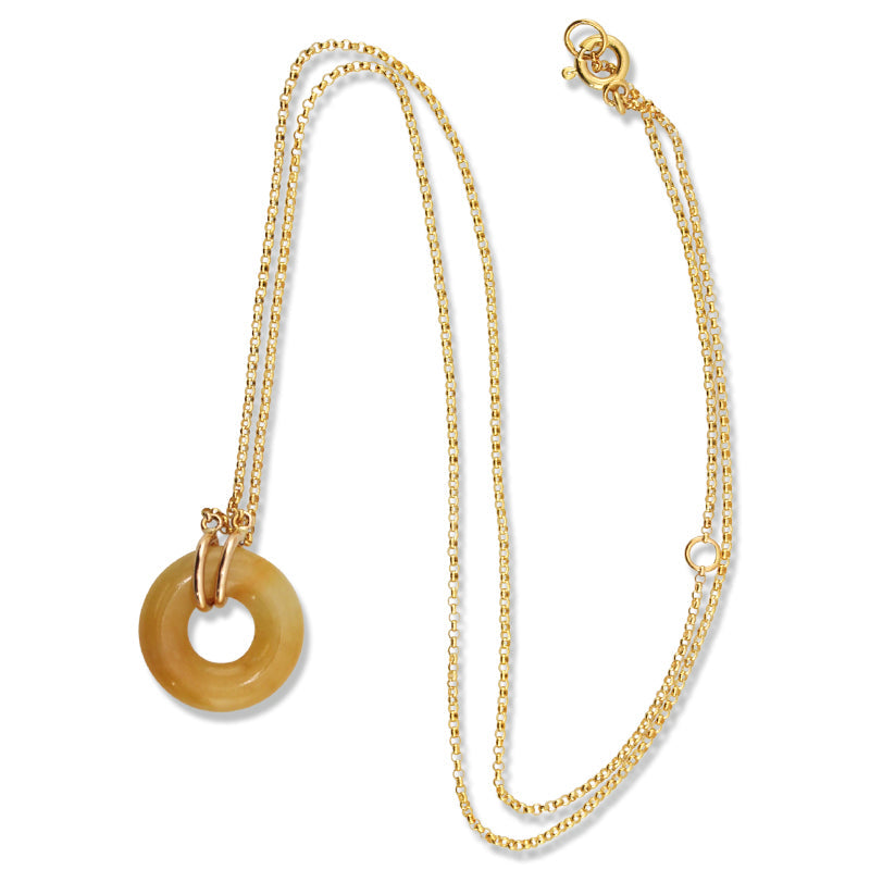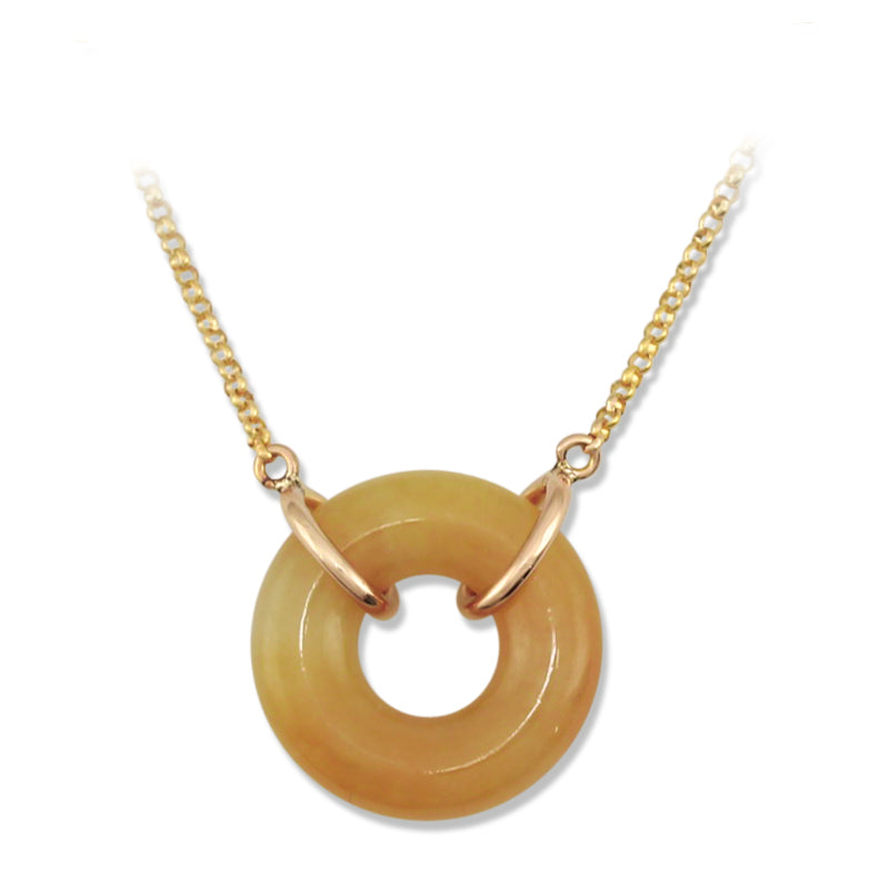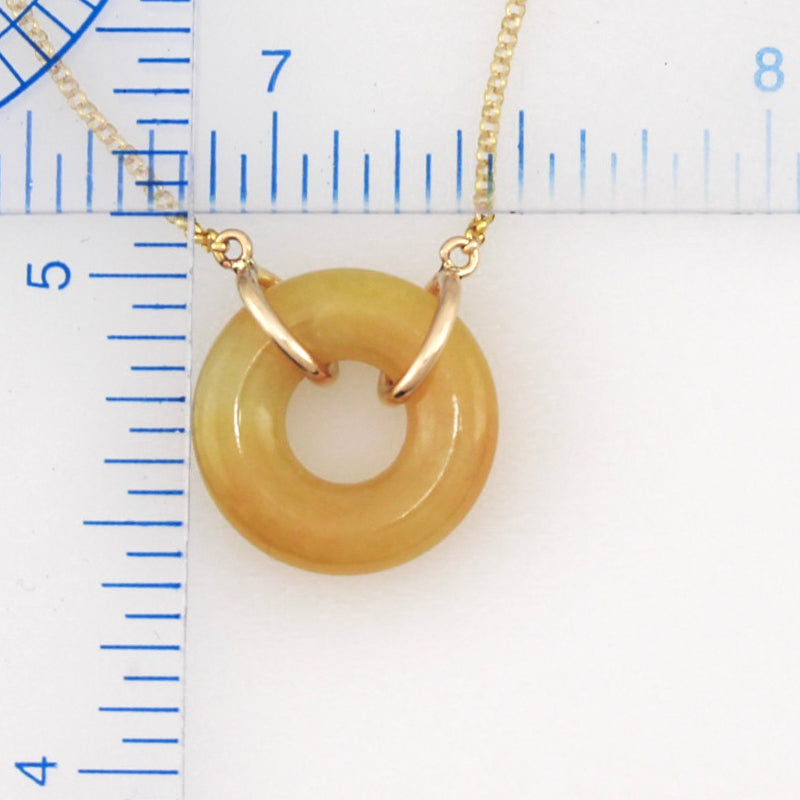 Beautiful yellow jadeite jade circle necklace set in 14K yellow gold on an adjustable 18 & 16 inch chain, this is the perfect piece for everyday wear & an amazing Jade Gift For ANYONE! Includes Gift Wrap & Certificate of Authenticity. Colors Vary.