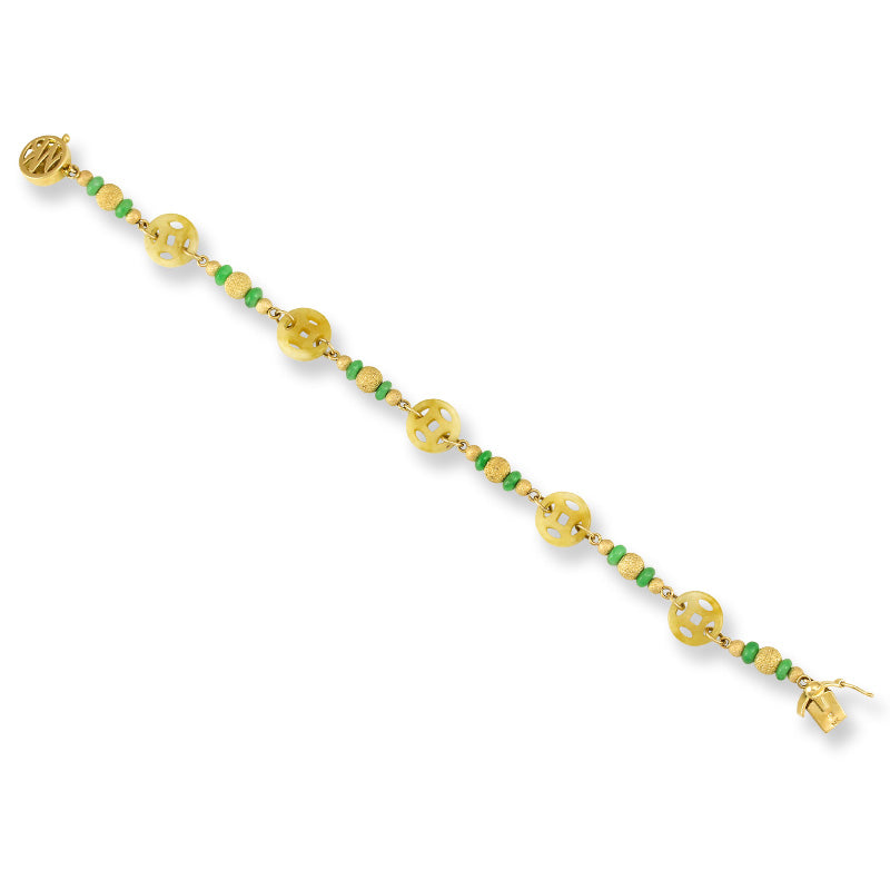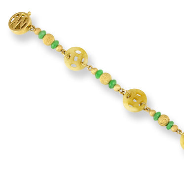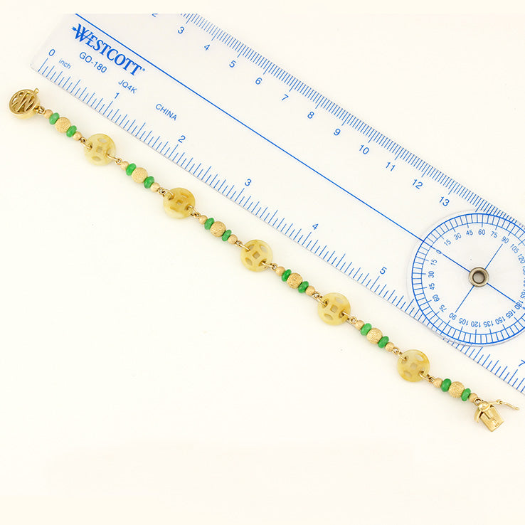 14K YELLOW GOLD YELLOW JADEITE JADE COIN BRACELET UPC #339422