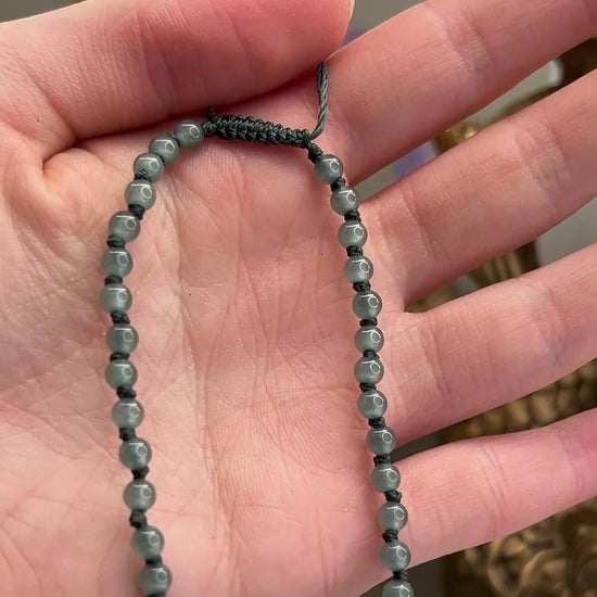 This beautiful pull-cord bracelet features thirty-seven translucent blue-green jadeite beads that radiate a serene, icy charm. Tailored to fit medium to large wrists comfortably, it effortlessly merges elegance with practicality. Add this exquisite piece to your jewelry collection for a touch of refined sophistication.