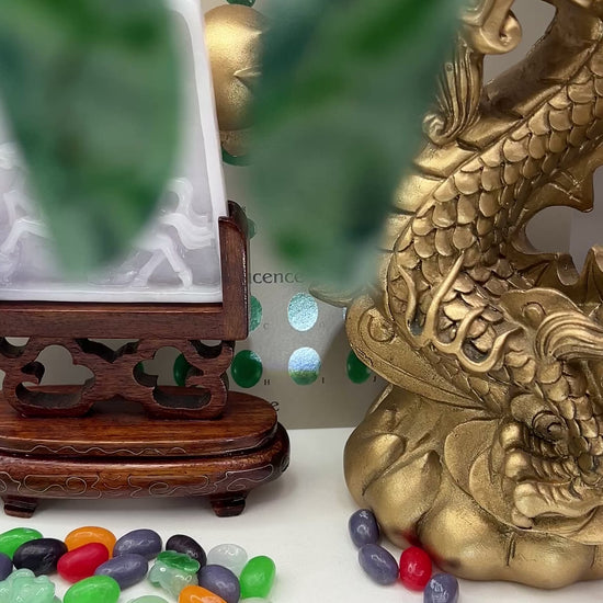 For millennia, jade has been believed to be a “living stone.” It is said that all stones want to be like jade, a gem set apart by its unique texture, depth, and intermixing colors. While some jade carvers want to cut away these characteristics, other artists see their true beauty as depicted here.