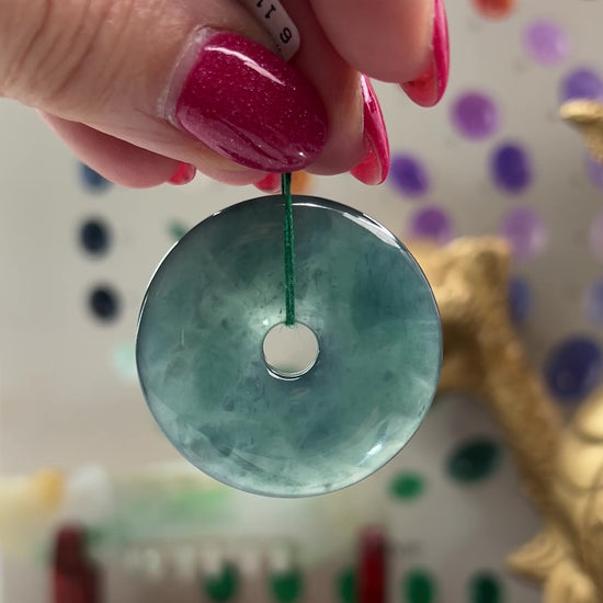 This jade disc for men and women can be worn on a variety of styles of chain or cord, has natural blue-green color, and was featured in our livestream with Kris the Jade Lady on Nov. 18th, 2025: