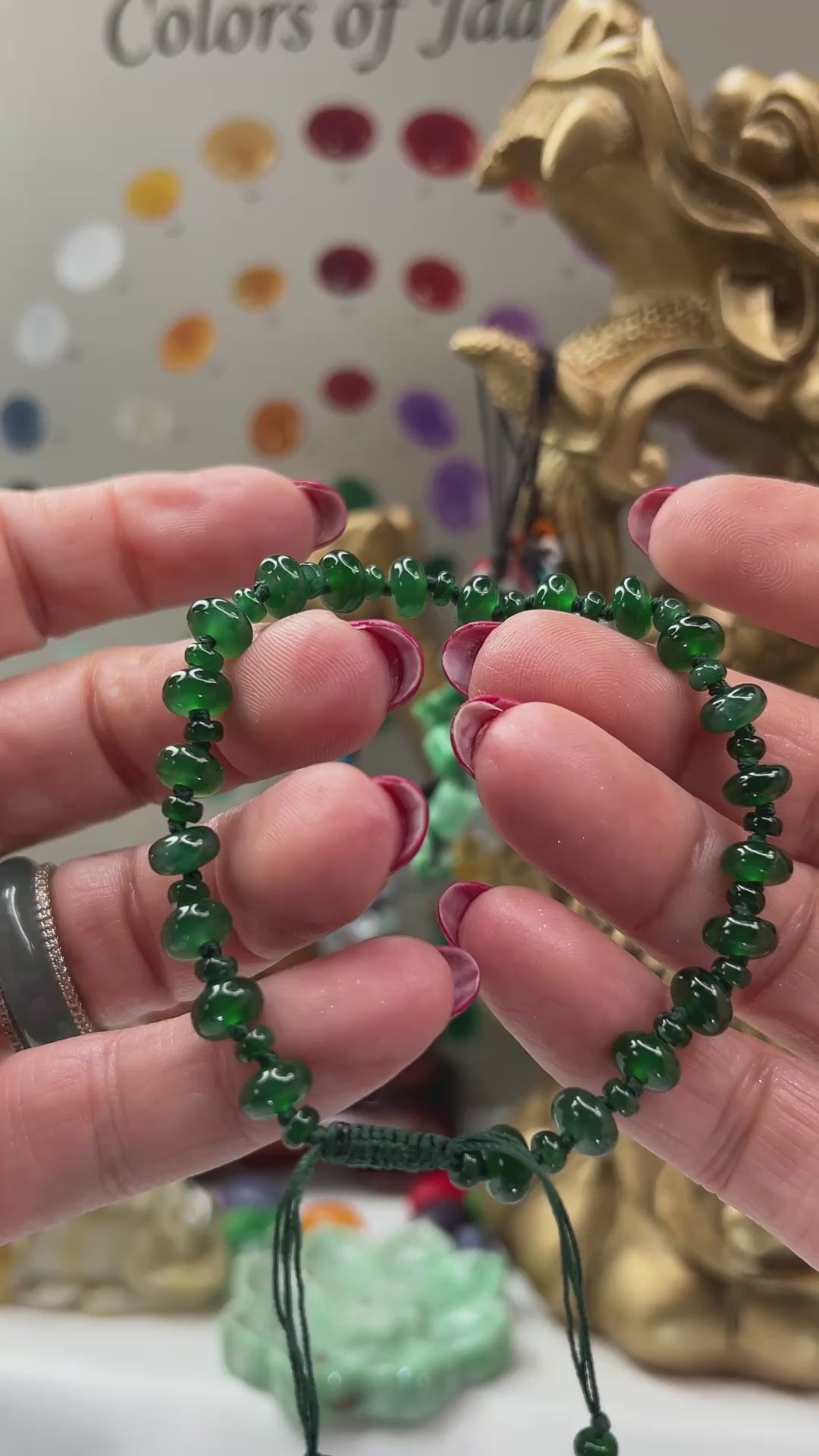 This authentic unisex jade bracelet comes on an adjustable bonded nylon cord. This jade stone has natural green jade color and is guaranteed free of dyes and resin/polymer-impregnation.