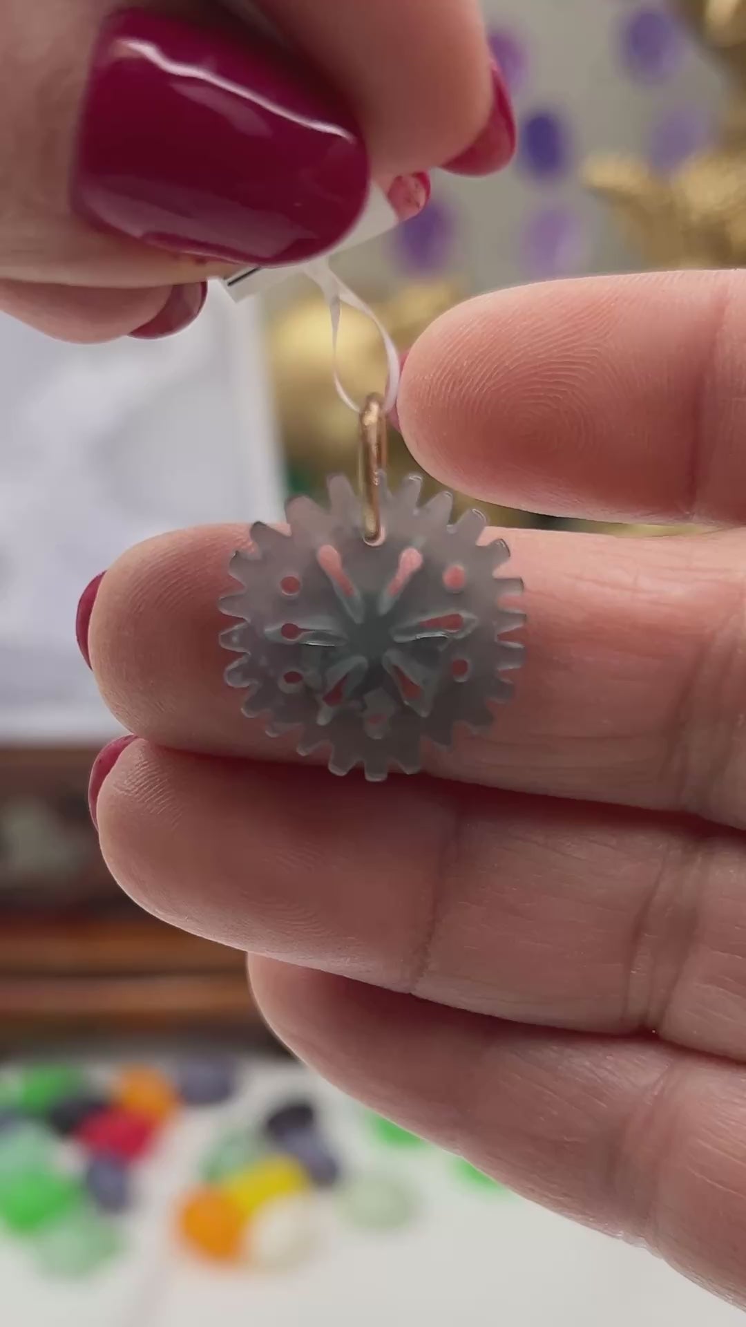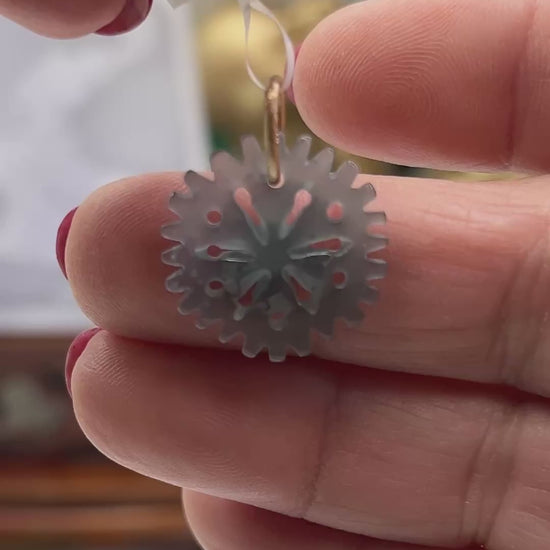 Crafted from authentic Guatemalan jadeite, this pendant features mesmerizing blue-green hues set in 14K yellow gold satin finish. The carved snowflake emanates a translucency that dance with light. Beyond its elegant design, this piece serves as a tactile worry stone, offering both visual beauty and a calming presence. A versatile accessory that honors jade's ancient heritage.