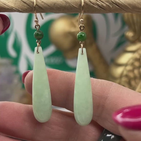 This authentic jade earring has 14K shepherds hooks. This jade stone has natural green jade color. Learn more about products like this: