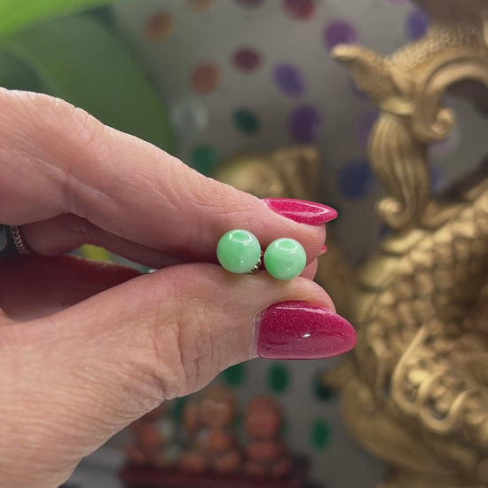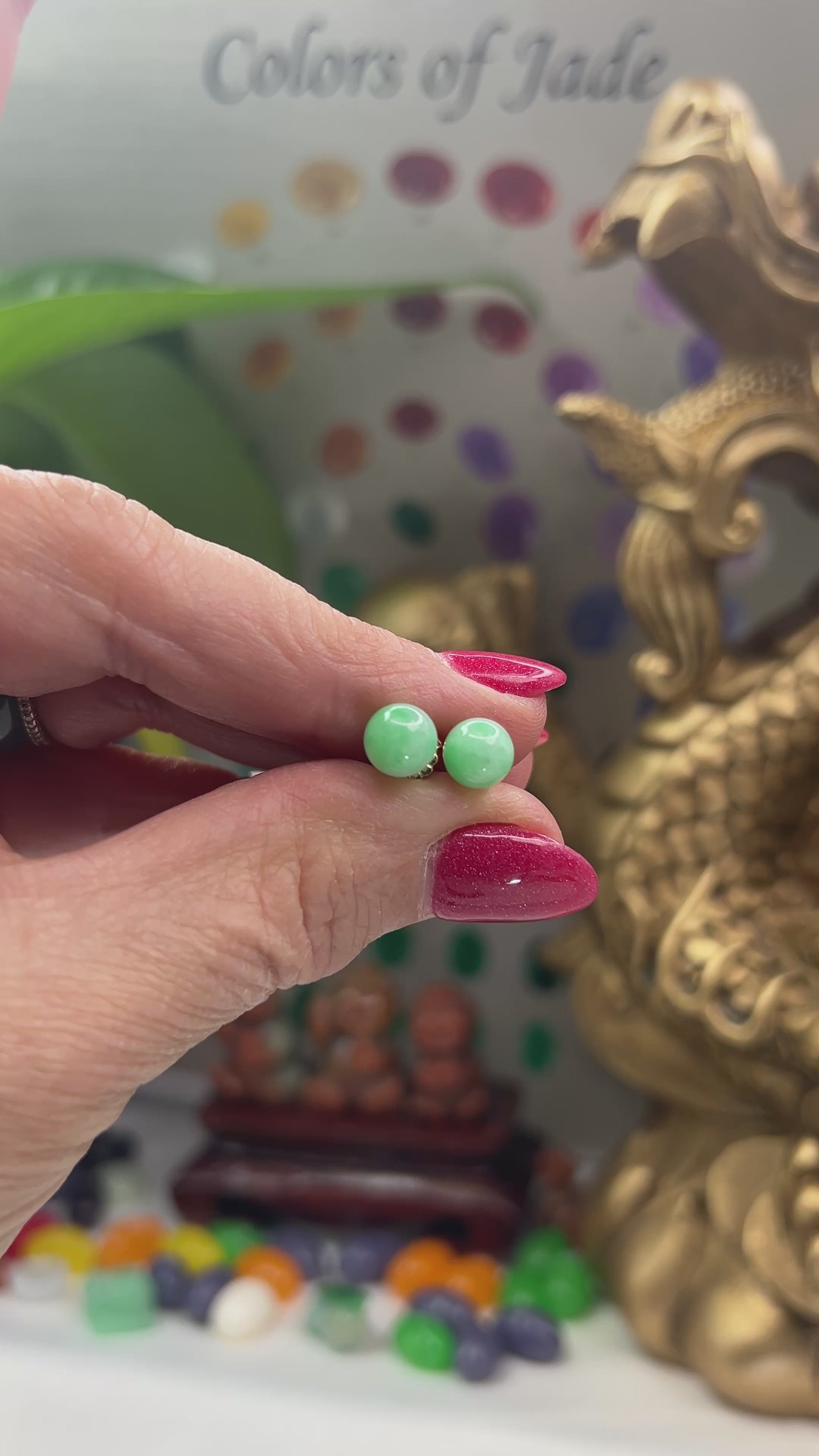A Mason-Kay signature piece, these green jadeite studs pair natural beauty with refined simplicity. The 6.5MM jade ball studs set in 14K yellow gold offer that perfect balance of subtle sophistication and eye-catching allure for any occasion.