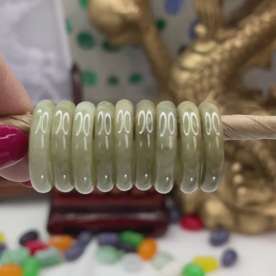 Discover the beauty of olive green jadeite jade with our continuous band ring. A must-have for any jade jewelry collection, this ring offers a perfect alternative to a traditional gold wedding band. Crafted from untreated, type A jadeite jade, each ring is unique and comes in various sizes. Elevate your style and show your passion for this precious gemstone with our beautiful band ring. This ring cannot be sized.