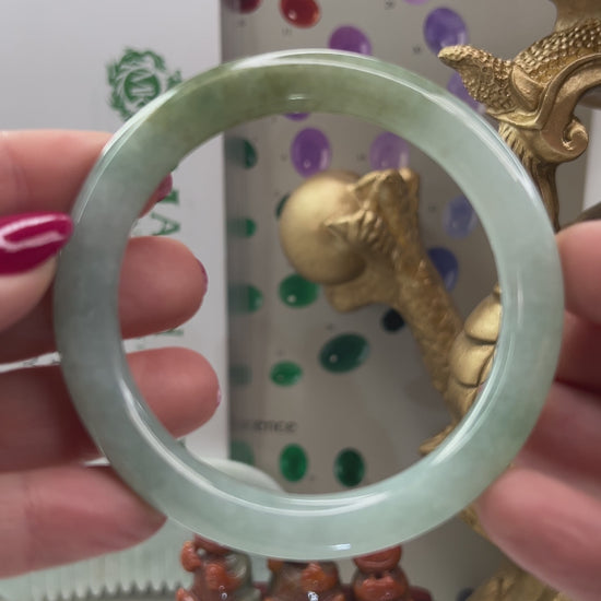 This natural jade bangle bracelet has natural green jade color. Our jadeite jade is natural, meaning it has NO dyes and NO polymer-impregnation. Some of our pieces may have a thin coating of beeswax to protect the surface of the jade. This does not affect the appearance or value of the stone.