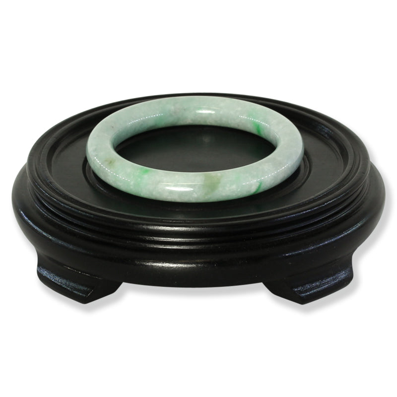 This natural jade bangle bracelet has natural green jade color. Our jadeite jade is natural, meaning it has NO dyes and NO polymer-impregnation. Some of our pieces may have a thin coating of beeswax to protect the surface of the jade. This does not affect the appearance or value of the stone.