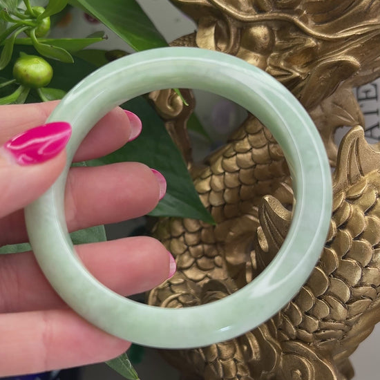 Discover the elegance of this light green jadeite jade bangle, crafted with a thicker half-round design for a bold, sophisticated look.