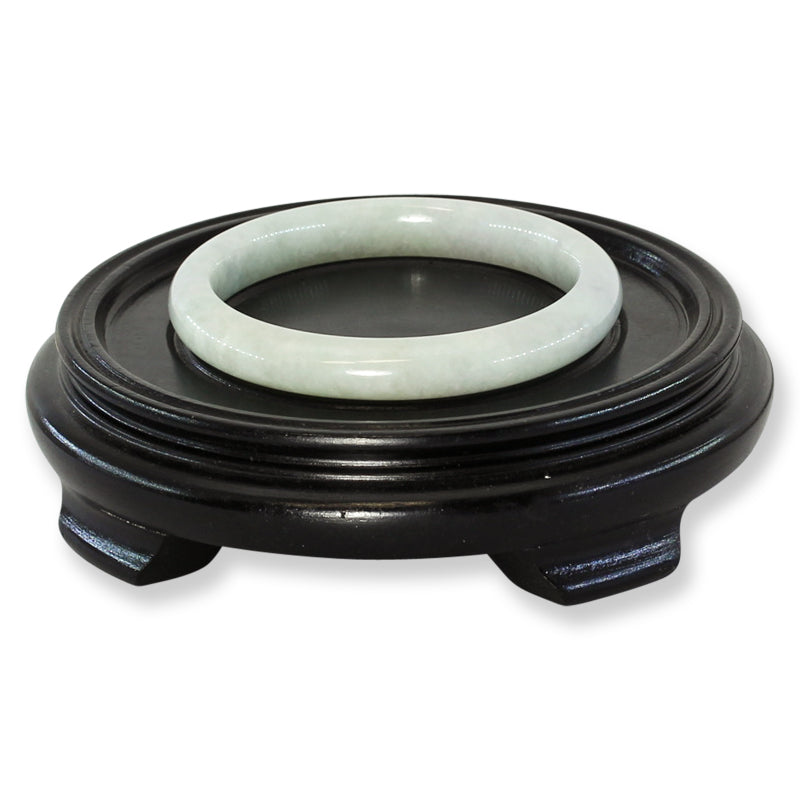 This natural jade bangle bracelet has natural light green jade color. Our jadeite jade is natural, meaning it has NO dyes and NO polymer-impregnation. Some of our pieces may have a thin coating of beeswax to protect the surface of the jade. This does not affect the appearance or value of the stone.