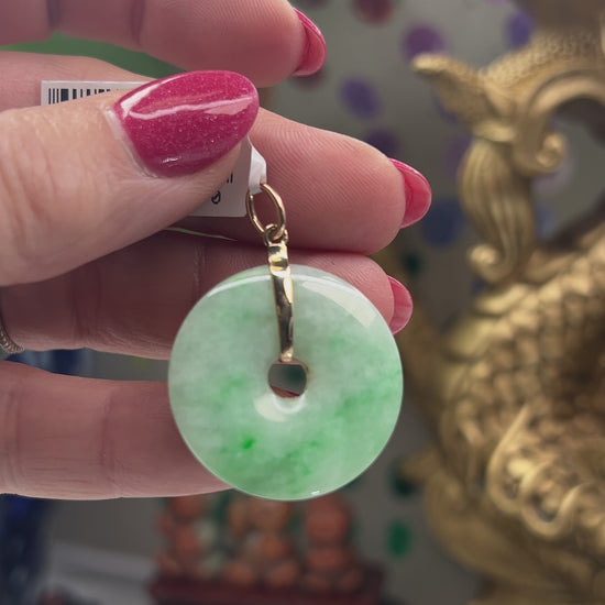 This authentic jade pendant for men and women can be worn on a variety of styles of chain and cord. This jade stone has natural green color.