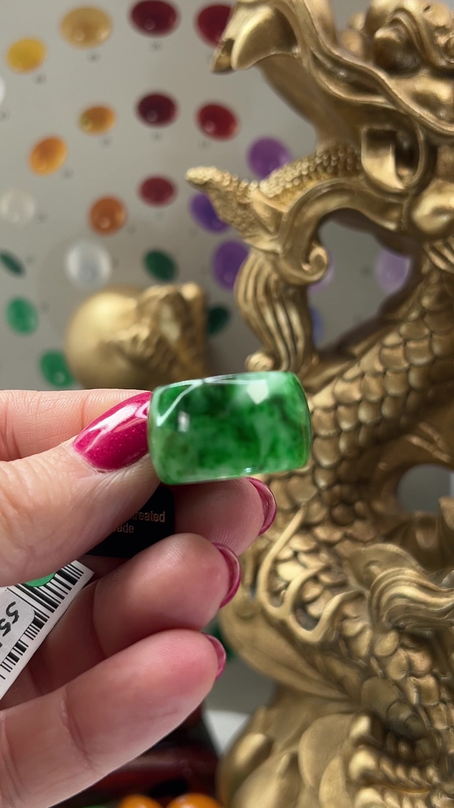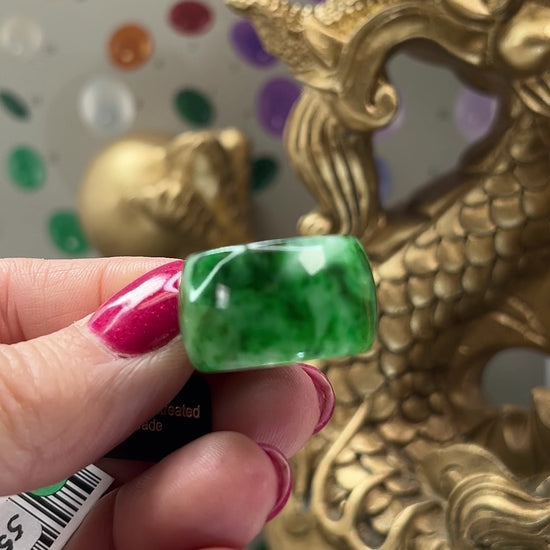 This striking green vintage jadeite jade ring offers a distinctive alternative to traditional gold bands. Carved from certified untreated type A jadeite jade. This ring cannot be sized.