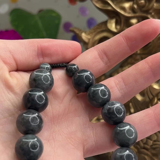 This timeless bracelet features 15 medium grey jadeite jade beads strung on an adjustable pull cord for a perfect, comfortable fit. Ideal for medium to larger wrists, it makes an exceptional jade gift for anyone who appreciates elegant and distinctive jewelry.