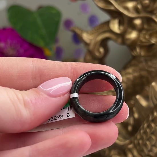 Give yourself the gift of jade with this unisex grey jadeite jade solid band ring, sized 6.25. This makes a great everyday ring for anyone, or as an alternative wedding band. These rings cannot be sized. All Mason-Kay jade is genuine A Jade.