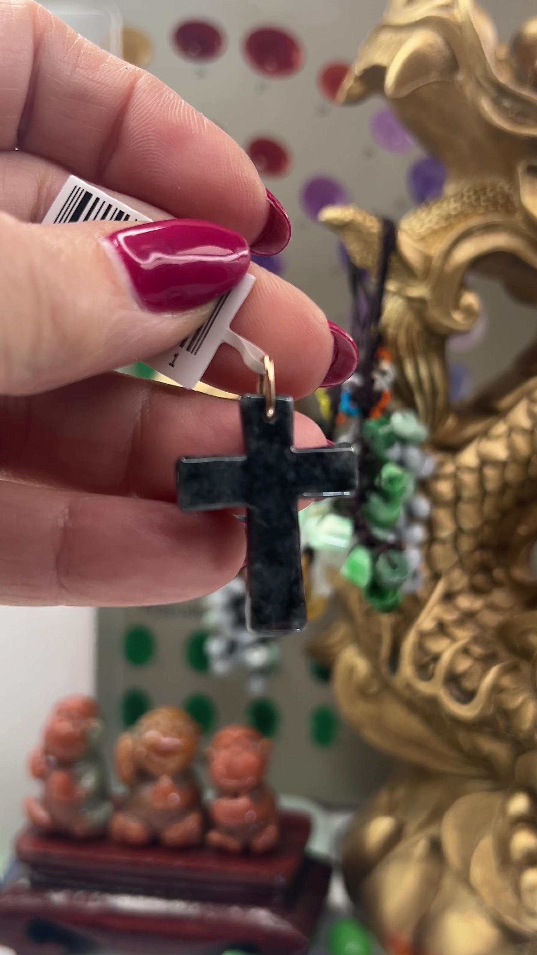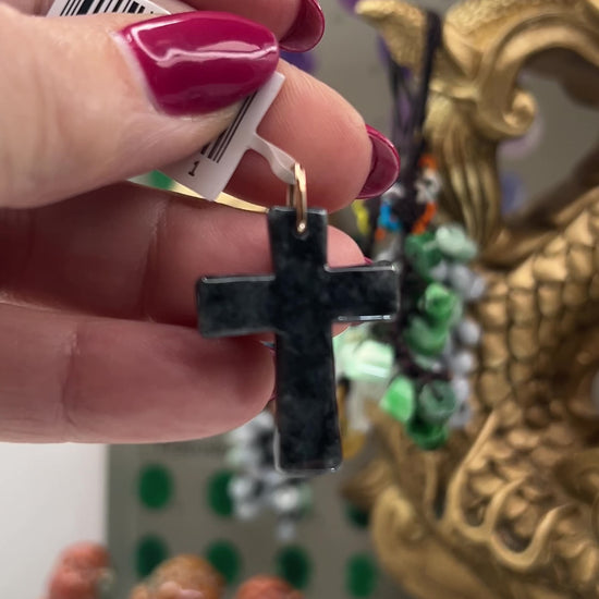 This grey jade cross pendant come with a 14K yellow gold bail. This authentic jade pendant for women and men can be worn on a variety of styles of chain and cord, and has natural grey color.