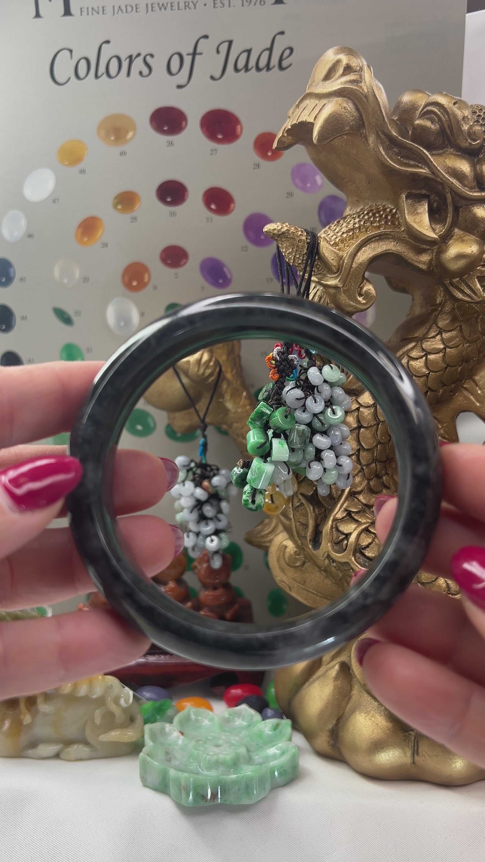 This natural jade bangle bracelet has natural grey jade color. Our jadeite jade is natural, meaning it has NO dyes and NO polymer-impregnation. Some of our pieces may have a thin coating of beeswax to protect the surface of the jade. This does not affect the appearance or value of the stone.