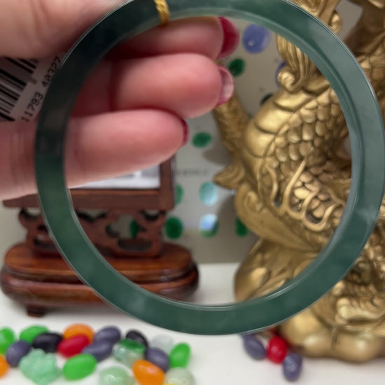 This natural jade bangle bracelet has natural green jade color. Our jadeite jade is natural, meaning it has NO dyes and NO polymer-impregnation. Some of our pieces may have a thin coating of beeswax to protect the surface of the jade. This does not affect the appearance or value of the stone.