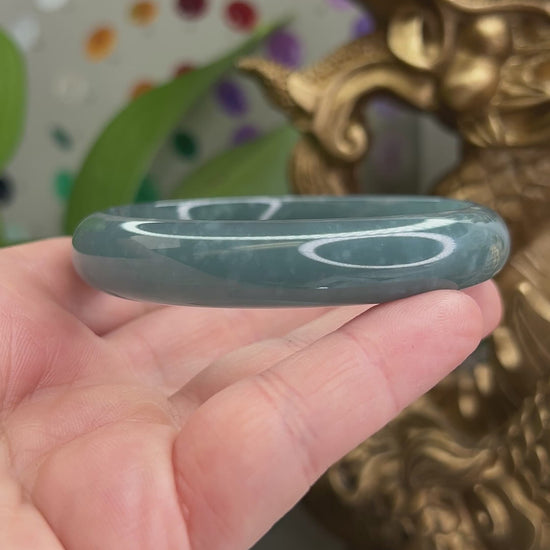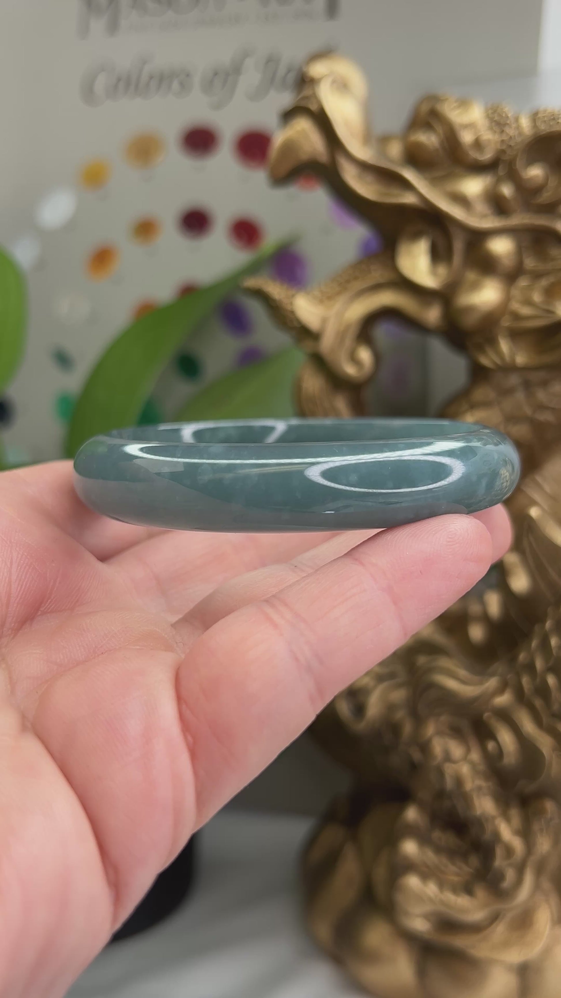This natural jade bangle bracelet has natural green jade color. Our jadeite jade is natural, meaning it has NO dyes and NO polymer-impregnation. Some of our pieces may have a thin coating of beeswax to protect the surface of the jade. This does not affect the appearance or value of the stone.