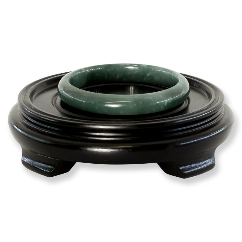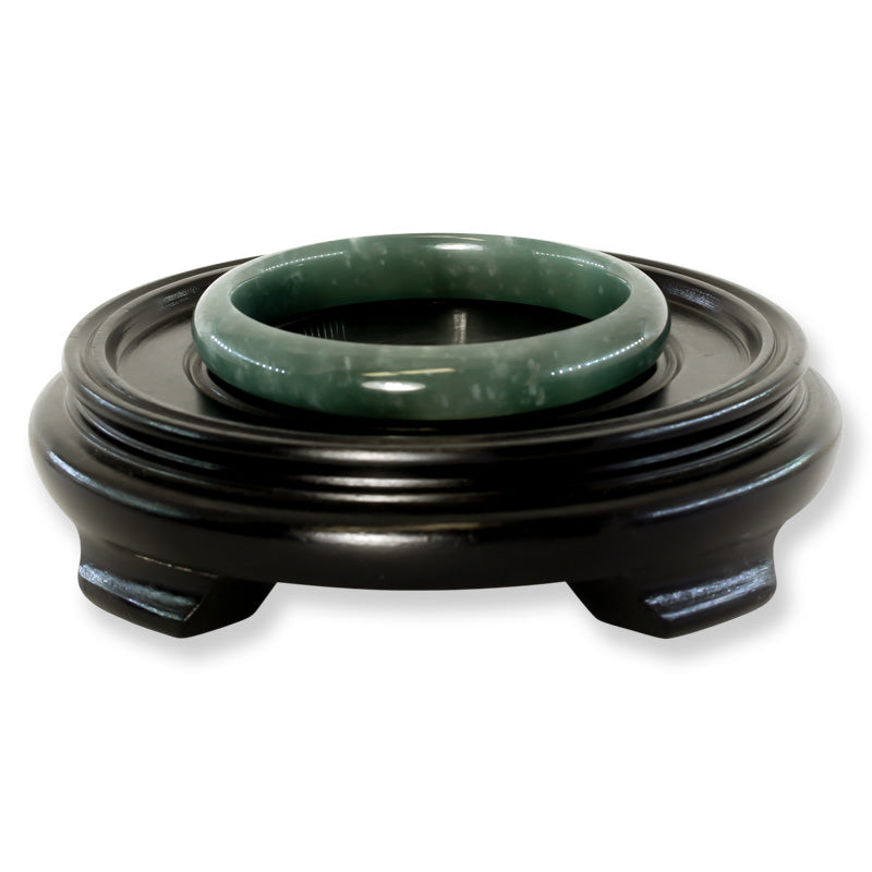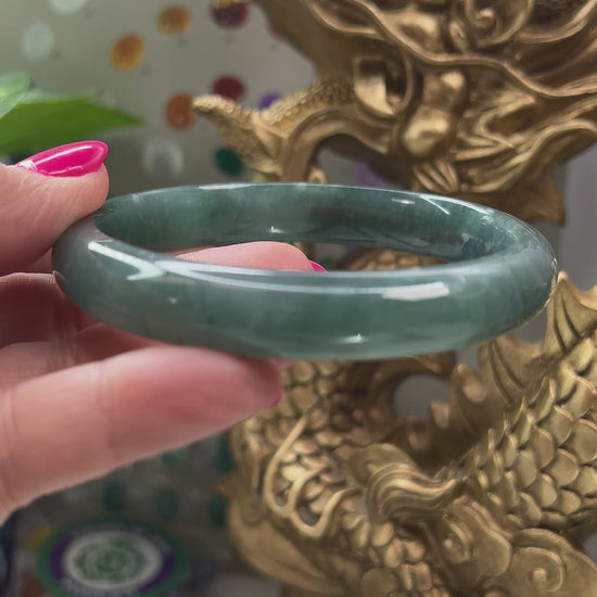 This natural jade bangle bracelet has natural green jade color. Our jadeite jade is natural, meaning it has NO dyes and NO polymer-impregnation. Some of our pieces may have a thin coating of beeswax to protect the surface of the jade. This does not affect the appearance or value of the stone.