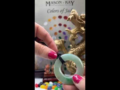 Remarkably, these two stylish grey jadeite jade interlocking rings were shaped from a single jade stone. With appealing medium to light hues, this necklace is an excellent choice for anyone.