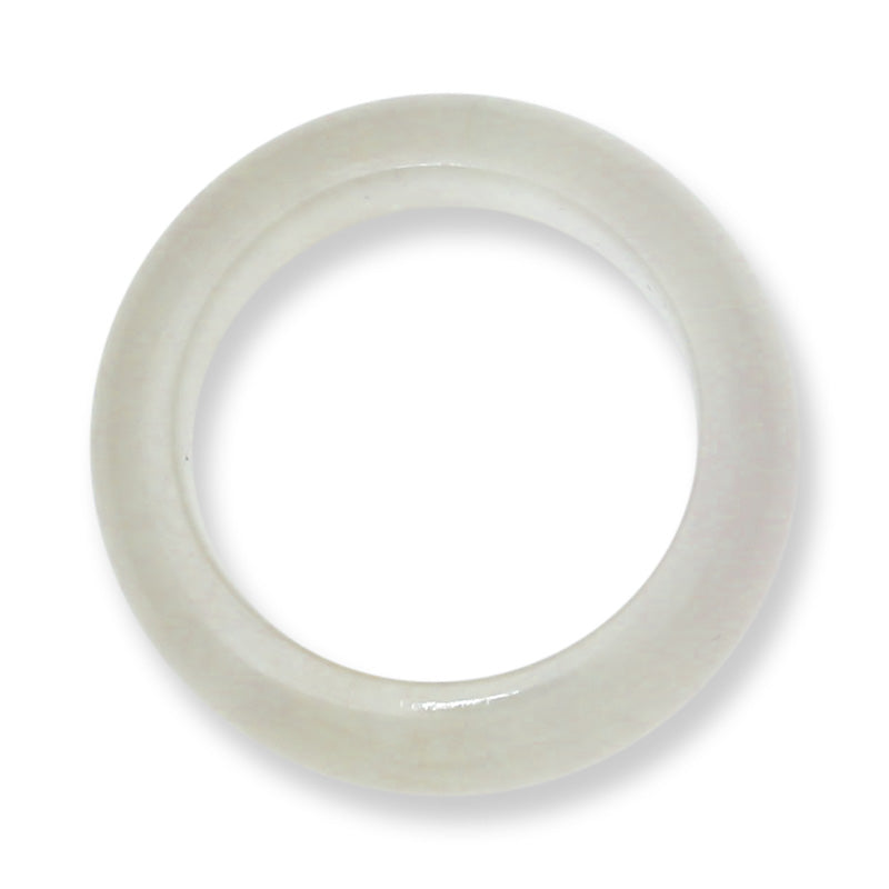This solid translucent ice jadeite jade band crafted from a single piece of jade offers a unique choice for both men and women. It serves as a striking alternative to the classic gold wedding band. The stone’s natural translucency means its look can change subtly with different lighting, adding a dynamic and captivating element to your ring. Highly translucent jade rings are tougher (more resistant to breaking) but should still be handled with care. Do not drop on cement or tile.