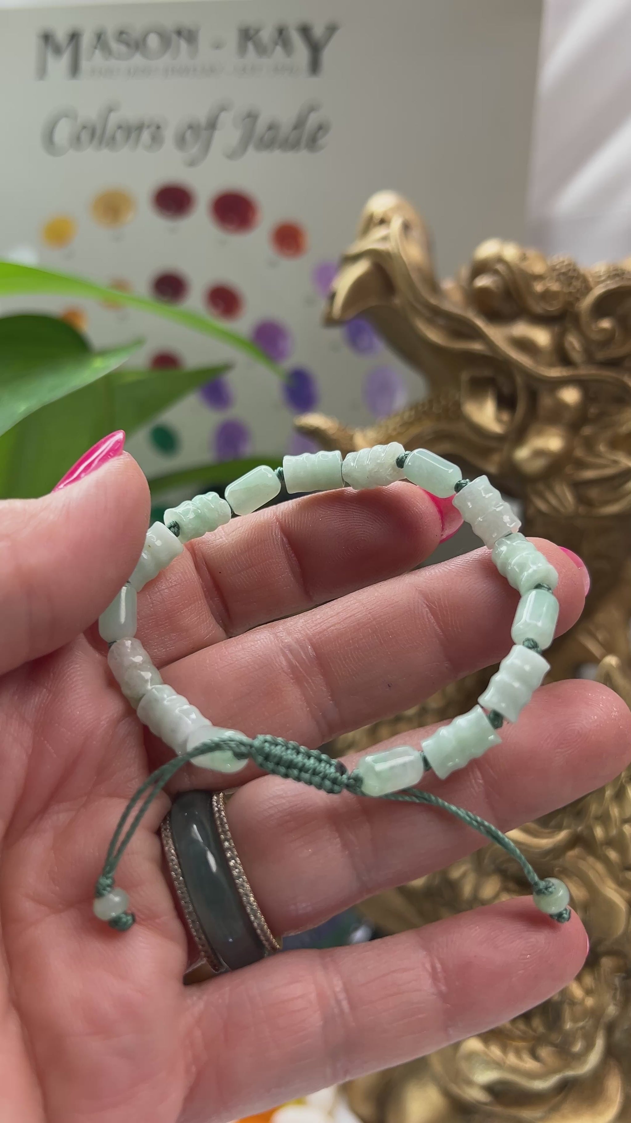 This authentic unisex jade bracelet comes on an adjustable bonded nylon cord. This jade stone has natural green color and is guaranteed free of dyes and resin/polymer-impregnation.
