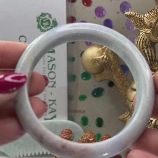 This natural jade bangle bracelet has natural light lavender jade color. Our jadeite jade is natural, meaning it has NO dyes and NO polymer-impregnation. Some of our pieces may have a thin coating of beeswax to protect the surface of the jade. This does not affect the appearance or value of the stone.