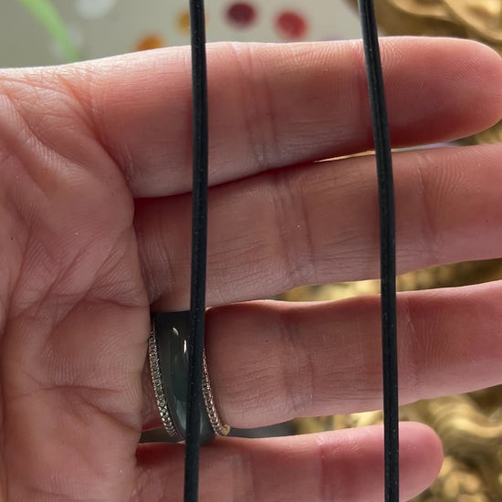 This authentic jade necklace for anyone comes on an 18" rubber cord. This jade stone has natural colors and is guaranteed free of dyes and resin/polymer-impregnation.
