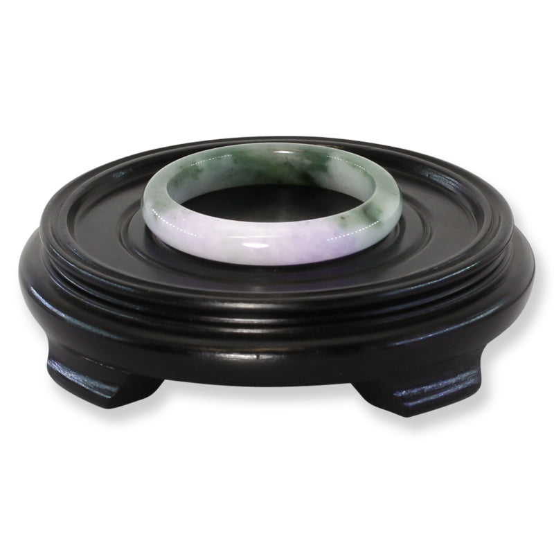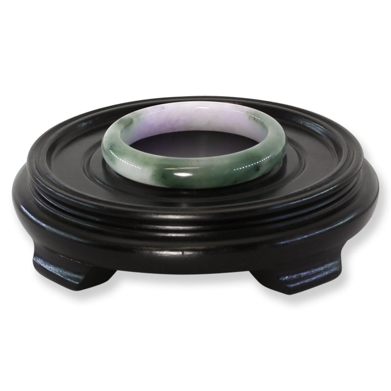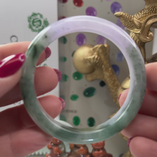 This natural jade bangle bracelet has natural green and lavender jade color. Our jadeite jade is natural, meaning it has NO dyes and NO polymer-impregnation. Some of our pieces may have a thin coating of beeswax to protect the surface of the jade. This does not affect the appearance or value of the stone.