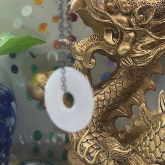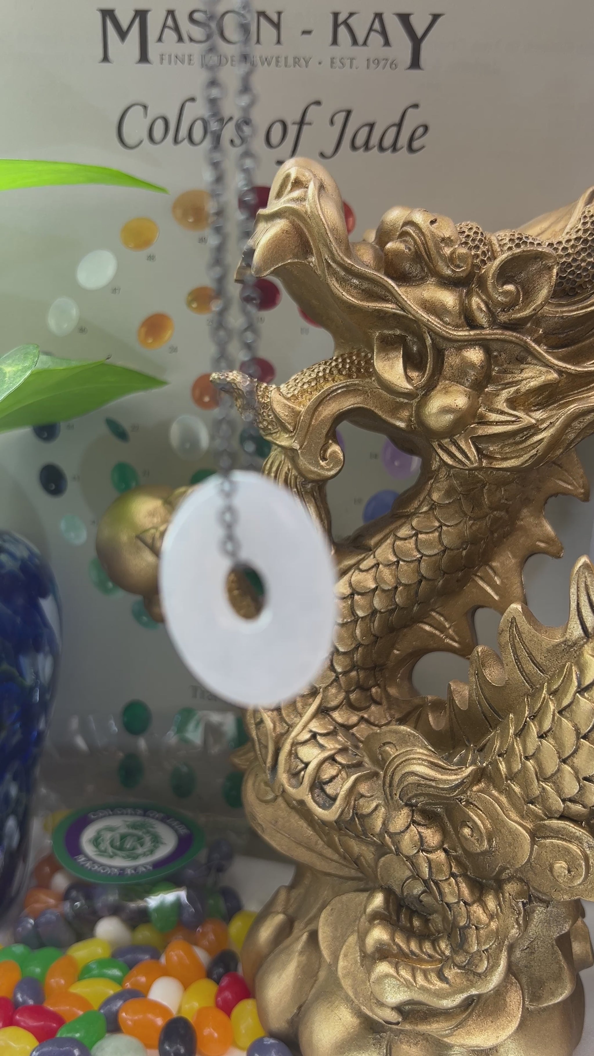 You might be wondering if this is ice jade. Technically, while this jade has an icy or translucent quality to it, it is technically white jade. This piece isn't quite translucent enough to be considered ice jade, which helps make it more affordable. Kris the Jade Lady calls this "icy white jade," which symbolizes purity and moral integrity.