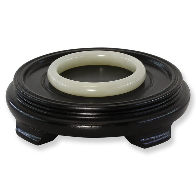 This natural jade bangle bracelet has natural off-white jade color. Our nephrite jade is natural, meaning it has NO dyes and NO polymer-impregnation. Some of our pieces may have a thin coating of beeswax to protect the surface of the jade. This does not affect the appearance or value of the stone.