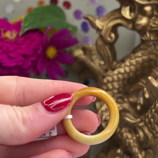 An affordable alternative to traditional wedding bands and stackable rings! This natural yellow jadeite solid band was cut from a single block of jade. Great for everyday wear for anyone. All Mason-Kay jade is natural, untreated type A Jade.